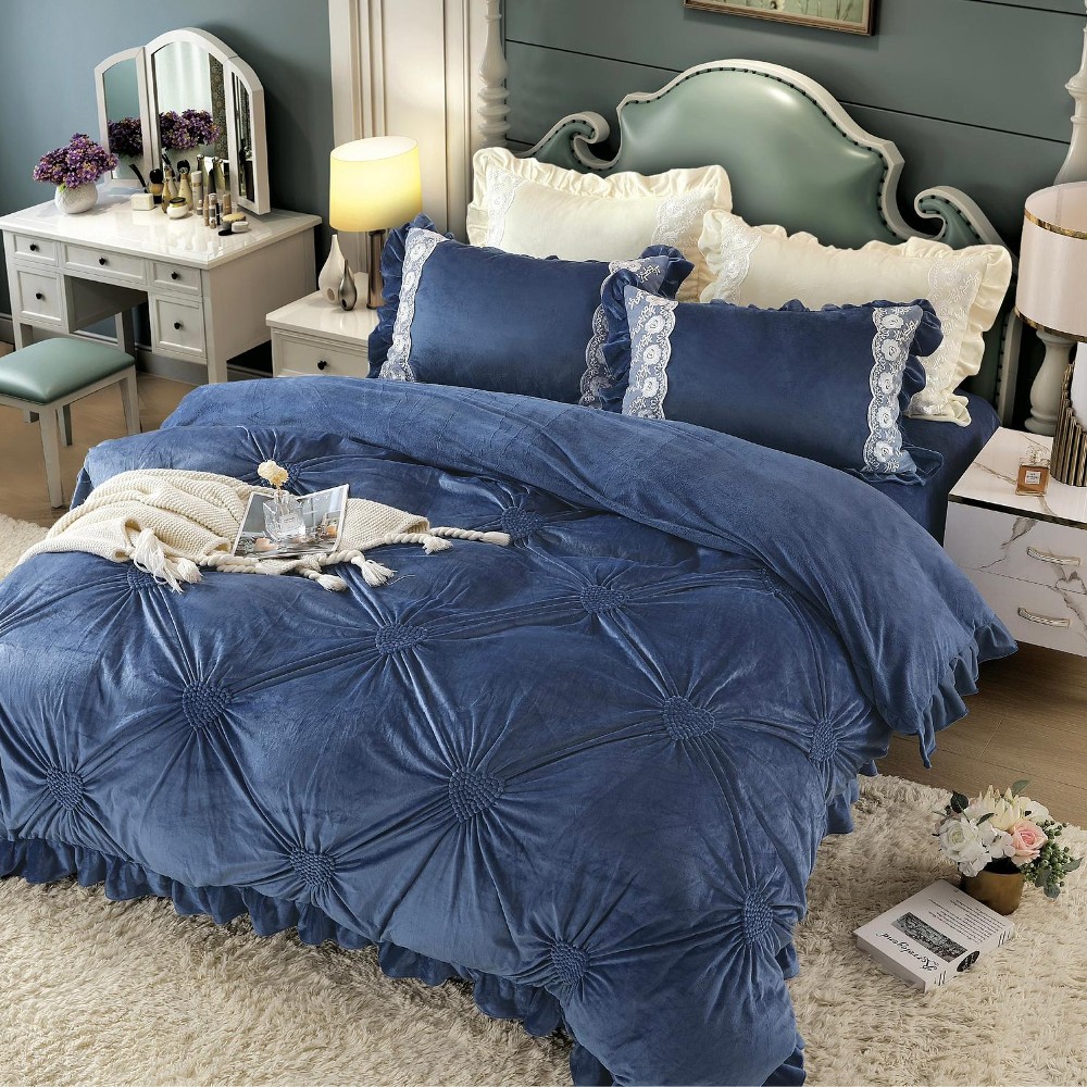 Alege noile lenjerii din catifea intr-o varietate de 13 nuante, compuse din 4 piese. Un set de lenjerie din catifea cu broderie este alcatuit din cearceaf de pat mare si elegant, plic pentru pilota prevazut cu o textura in relief extrem de catifelata, cat si 2 fete de perna pentru a-ti oferi tot confortul necesar in timpul somnului.