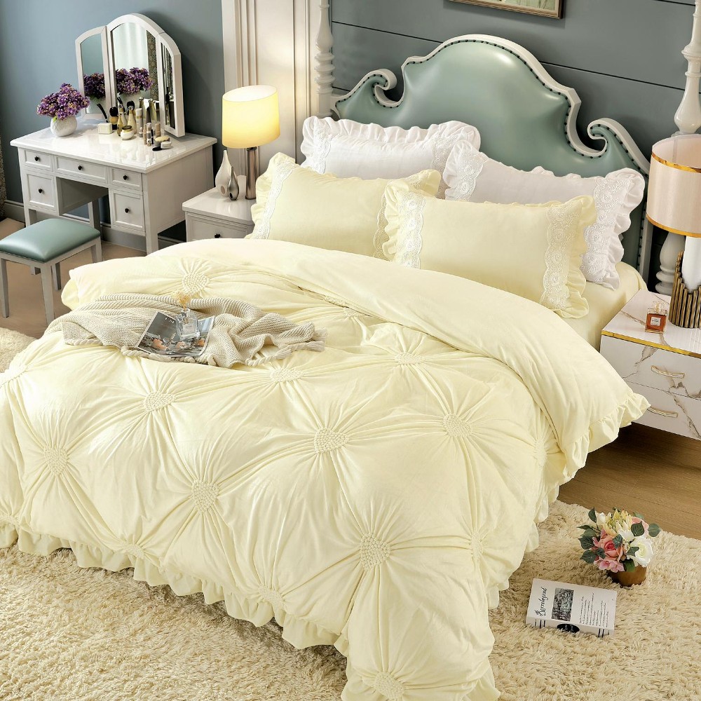 Set Lenjerie de Pat Pufulino Uni, Model Brodat, 4 Piese, Pat 2 Persoane – Crem – PUF73562