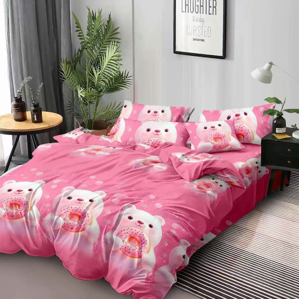 Set Lenjerie Finet Gros, 6 Piese, Pat 2 Persoane, Roz cu Ursuleti – Sky Home – PUF66015