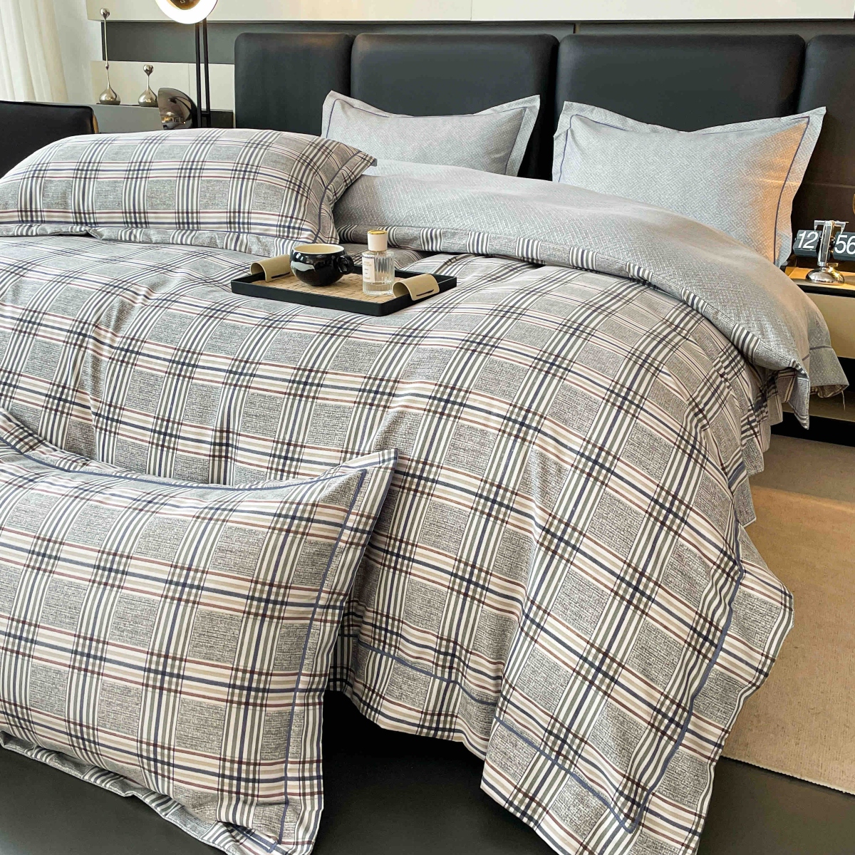 Lenjeria dispune de 6 piese si este conceputa pentru a fi utilizata pe paturile matrimoniale. Cearceaful cu elastic, model uni, este special conceput pentru a va oferi intreg confortul necesar in timpul somnului, sistemul inteligent de prindere fiind ideal pentru toate tipurile de saltele(maxim 30cm inaltime).