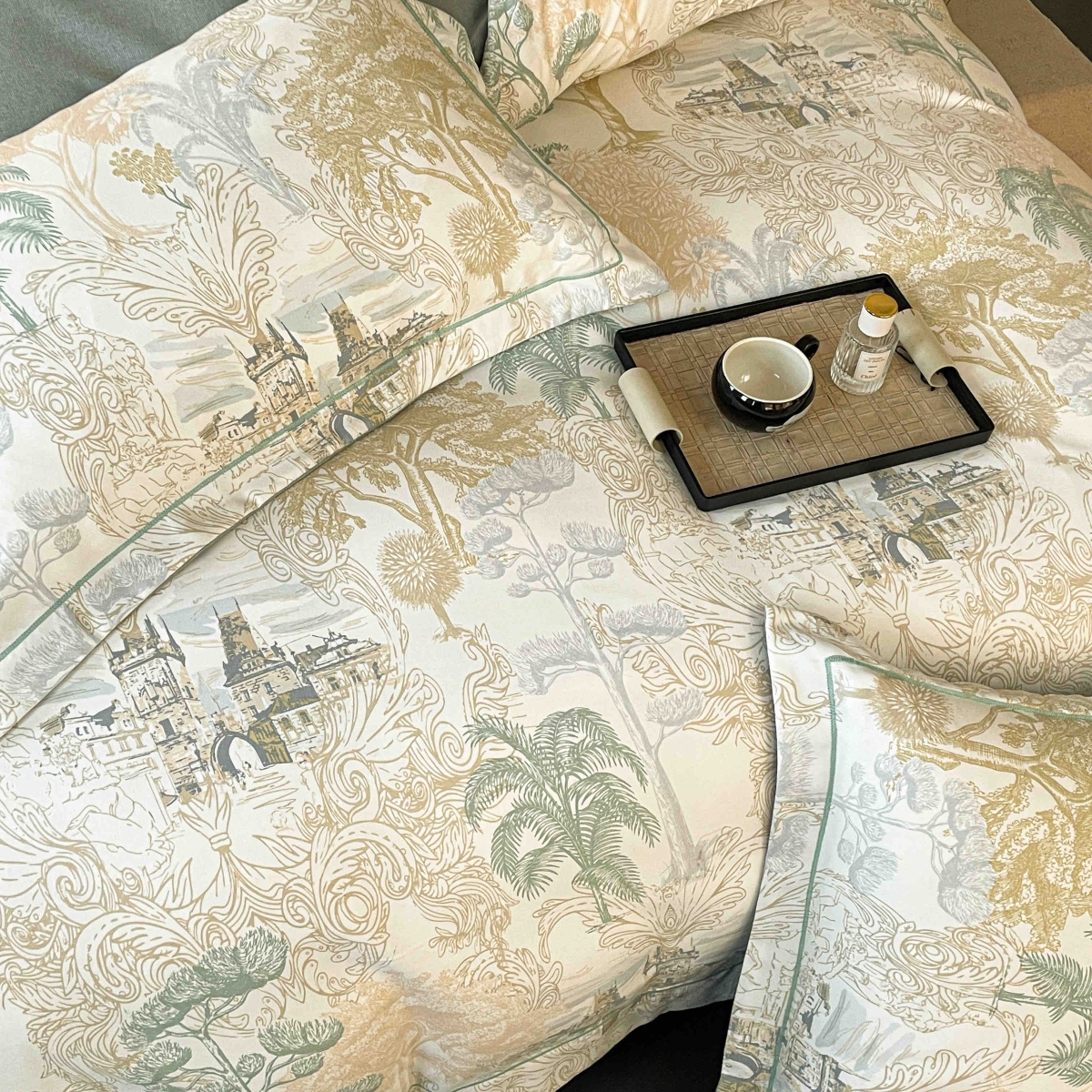 Set Lenjerie Premium cu Elastic, Finet Superior, Cutie Cadou, 6 Piese, Pat Dublu – Tropical Green – PUF185039-07