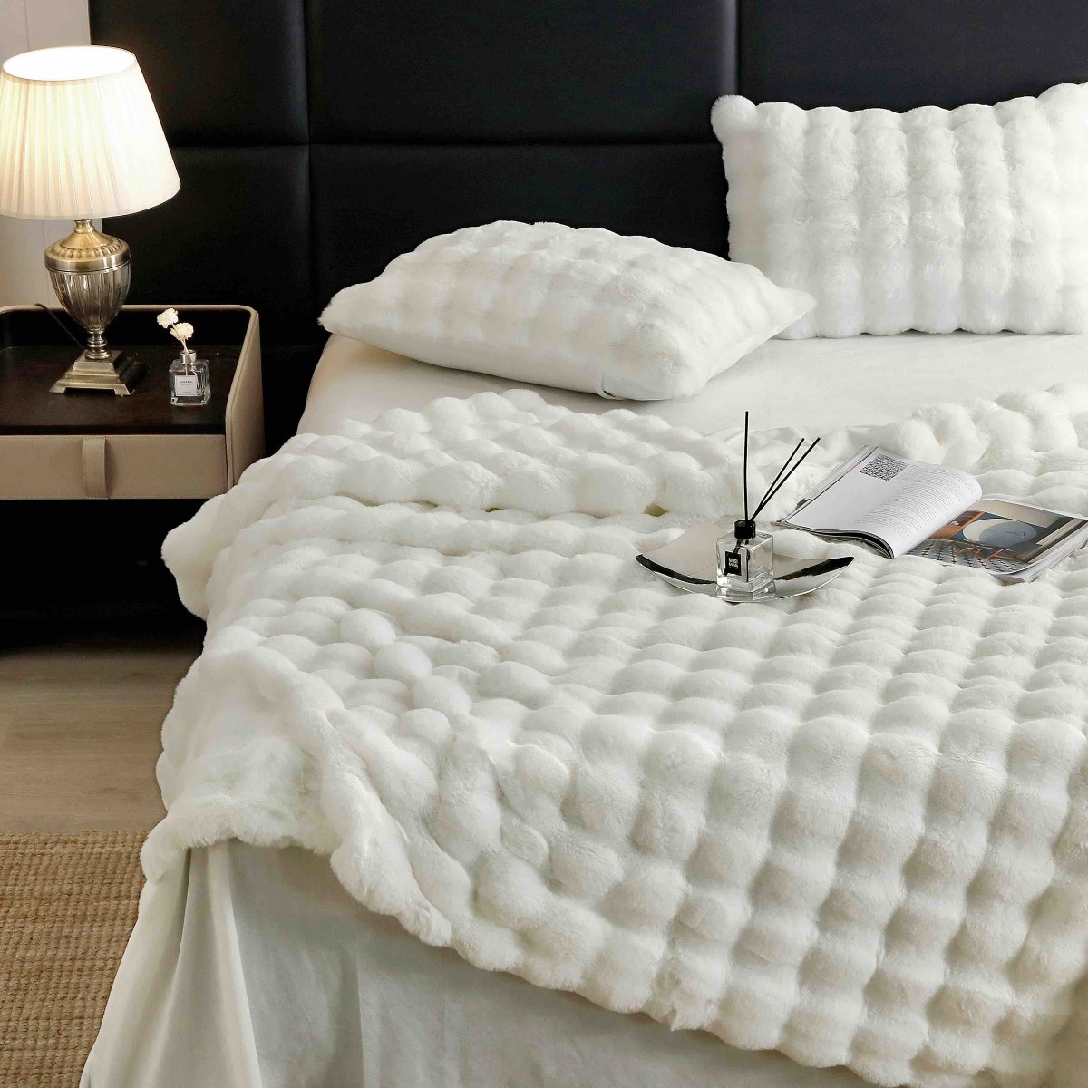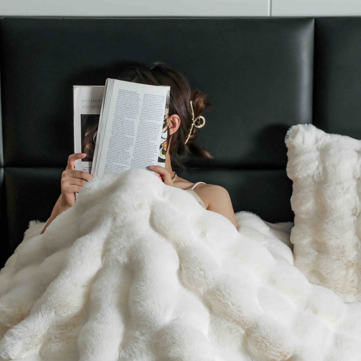 Set Lenjerie Super Pufoasa din Blanita Artificiala de Iepure, 6 Piese, 6.5kg – Crem – JoJo Home – PUF141088
