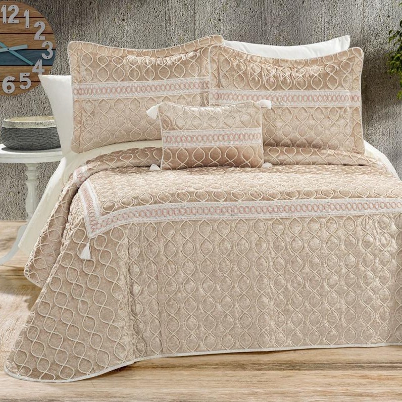 Set Luxury Brillant Dante: Cuvertura de Pat + 3 Fete de Perna, 4 Piese, Pat 2 Persoane – Cappuccino – PUF92962