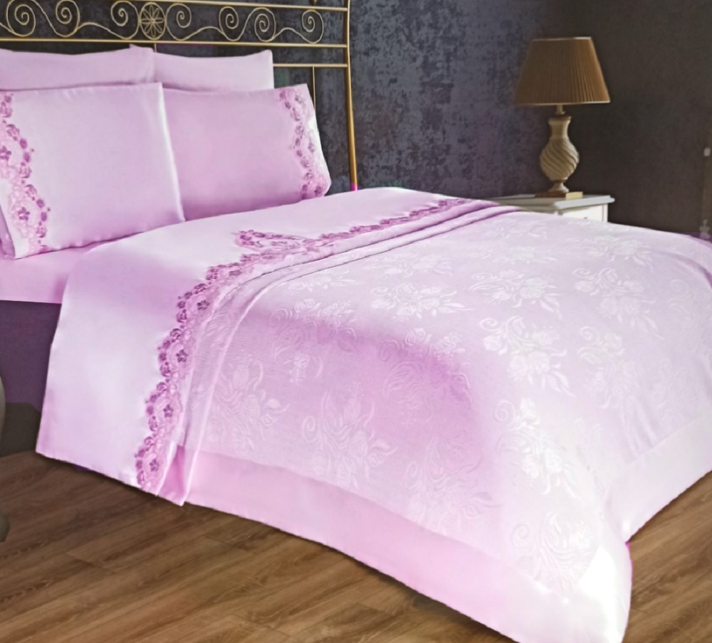 Set Luxury Diana: Cuvertura + Lenjerie de Pat, 6 Piese, Pat 2 Persoane, Roz – Viven – PUF108663