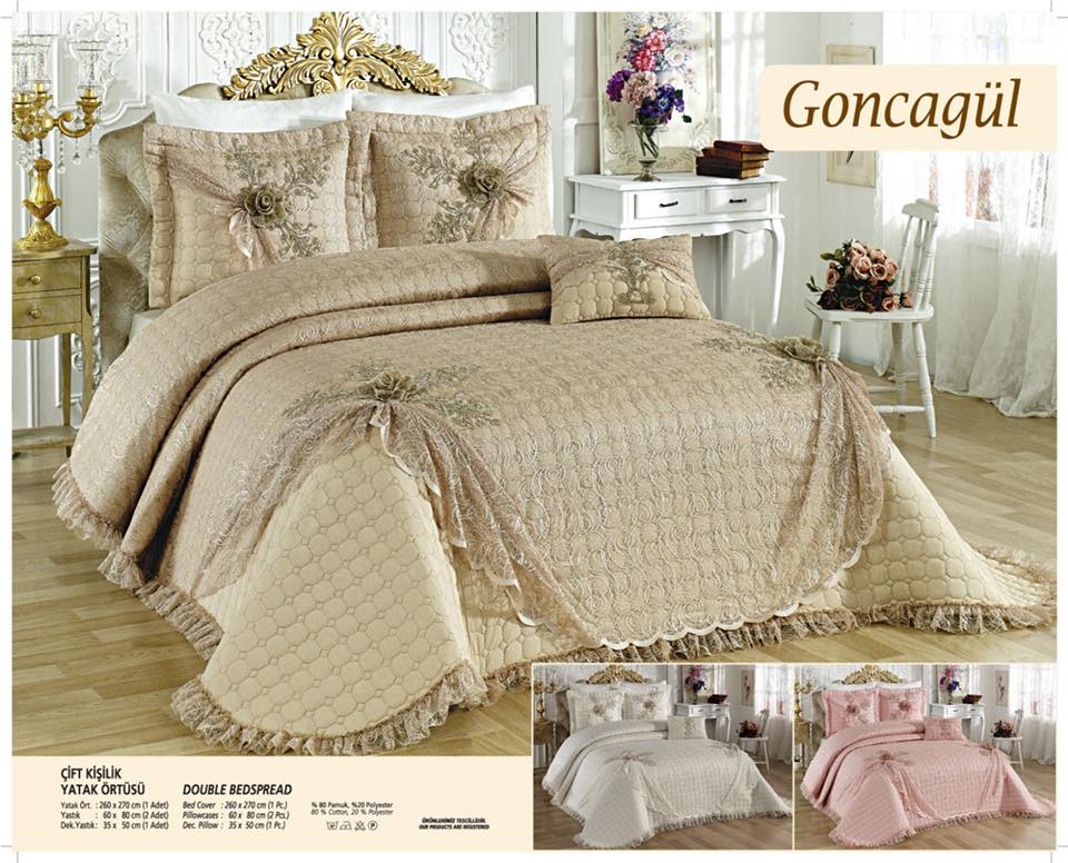 Set Luxury Goncagul: Cuvertura de Pat + 3 Fete de Perna, 4 Piese, Pat 2 Persoane – Alçeyiz Home – PUF57889