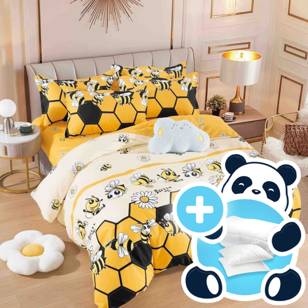 SET PAT 1 PERSOANA: Lenjerie Finet Gros, 4 Piese + Pilota + Perna – PUF74687