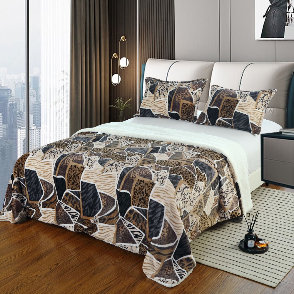 Set Patura Cocolino cu Blanita + 2 Fete de Perna, Pat 2 Persoane – Brown Blanket – Sky Home – PUF169038*