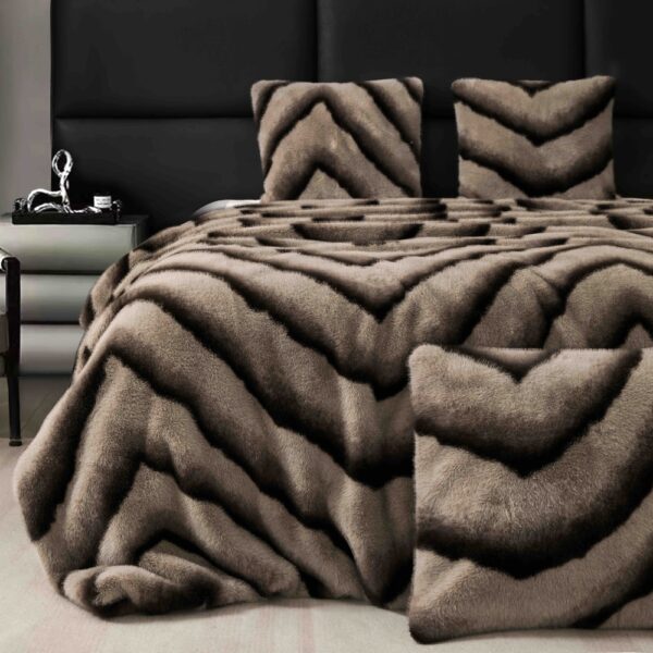 Set Pătură de Lux cu Fermoar din Blana Artificiala de Nurca + 2 Fete de Perna, Pat 2 Persoane, 200 x 230cm – Brown Lines – PUF183617-04